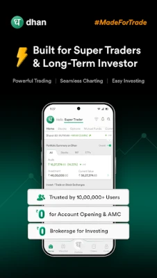 Dhan 10 لاکھ سے زیادہ صارفین کی پسندیدہ ٹریڈنگ ایپ ہے۔ تاجروں اور سرمایہ کاروں کے لیے رفتار، جدید ترین اوزار، اعلیٰ معیار کی سروس اور غیر معمولی کسٹمر سپورٹ فراہم کرتی ہے۔ یہ ایک قابلِ اعتماد اور جامع پلیٹ فارم ہے۔