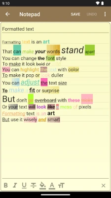 **Notepad** صرف ٹیکسٹ نوٹس بنانے اور ترمیم کرنے تک محدود نہیں۔ یہ آپ کو TXT فائلوں سے نوٹس درآمد کرنے اور انہیں دوبارہ TXT فارمیٹ میں محفوظ کرنے کی سہولت بھی فراہم کرتی ہے۔ اپنے نوٹس کو دیگر ایپس جیسے ای میل کے ذریعے آسانی سے شیئر کریں۔ ہوم اسکرین پر نوٹس ویجیٹس کا استعمال کرتے ہوئے فوری یاد دہانیاں قائم کریں، بالکل پوسٹ اٹ نوٹس کی طرح۔ اپنے نوٹس کو زمروں میں منظم کریں اور مختلف رنگین تھیمز، بشمول ڈارک موڈ، کے ساتھ اپنے تجربے کو ذاتی بنائیں۔ لائنوں والا پس منظر یا نمبر والی لائنیں شامل کرکے اپنی تحریروں کو مزید منظم بنائیں۔ اس کی طاقتور سرچ فنکشن کے ساتھ، آپ سیکنڈوں میں کسی بھی نوٹ میں مطلوبہ معلومات تلاش کر سکتے ہیں۔