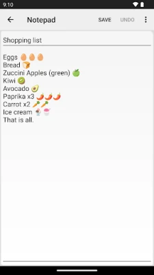 نوٹ پیڈ ایک چھوٹی اور تیز نوٹس لینے والی ایپ ہے جو آپ کو جلدی سے نوٹس، میمو یا کوئی بھی سادہ ٹیکسٹ مواد بنانے میں مدد دیتی ہے۔ اپنے اہم خیالات اور معلومات کو آسانی سے محفوظ کریں۔