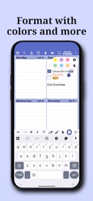 "Weekly Planner" کے ساتھ ہر کام کو منظم کرنا ایک ہوا کا جھونکا ہے۔ ہفتوں کے درمیان آسانی سے سوائپ کریں تاکہ آپ مستقبل کی منصوبہ بندی کر سکیں یا ماضی کی کامیابیوں کا جائزہ لے سکیں۔ اپنی اندراجات کو بہتر بنانے کے لیے بھرپور ٹیکسٹ فارمیٹنگ کا استعمال کریں – اہم کاموں اور ملاقاتوں کو نمایاں کرنے کے لیے بولڈ، اٹالک، رنگوں اور مزید کا انتخاب کریں۔ مزید یہ کہ، آپ کے منصوبے کبھی گم نہیں ہوں گے کیونکہ آپ کا ڈیٹا خود بخود گوگل ڈرائیو پر محفوظ ہو جاتا ہے، جس سے آپ ذہنی سکون حاصل کرتے ہیں۔ اپنے منصوبہ سازوں کو دوستوں، خاندان یا ساتھیوں کے ساتھ شیئر کر کے باہمی تعاون کو فروغ دیں، چاہے وہ کام کے منصوبے ہوں یا خاندانی تنظیم۔ یہ سب آپ کی ترجیحات کے مطابق مکمل طور پر قابل تخصیص ہے، جہاں آپ لے آؤٹس، تھیمز اور سیٹنگز کو اپنی مرضی کے مطابق بنا سکتے ہیں۔